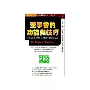 企業菁英的策略管理概論![]() | 董事會的功能與技巧—管理者與董事會良性互動的25個溝通方式![]() | 如何創造影響力![]() |